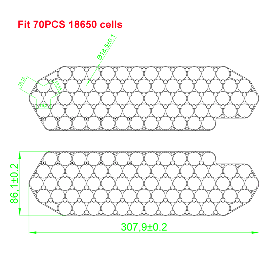 36V-18650 10S7P, 48V-18650 13S5P, 52V-18650 14S5P |